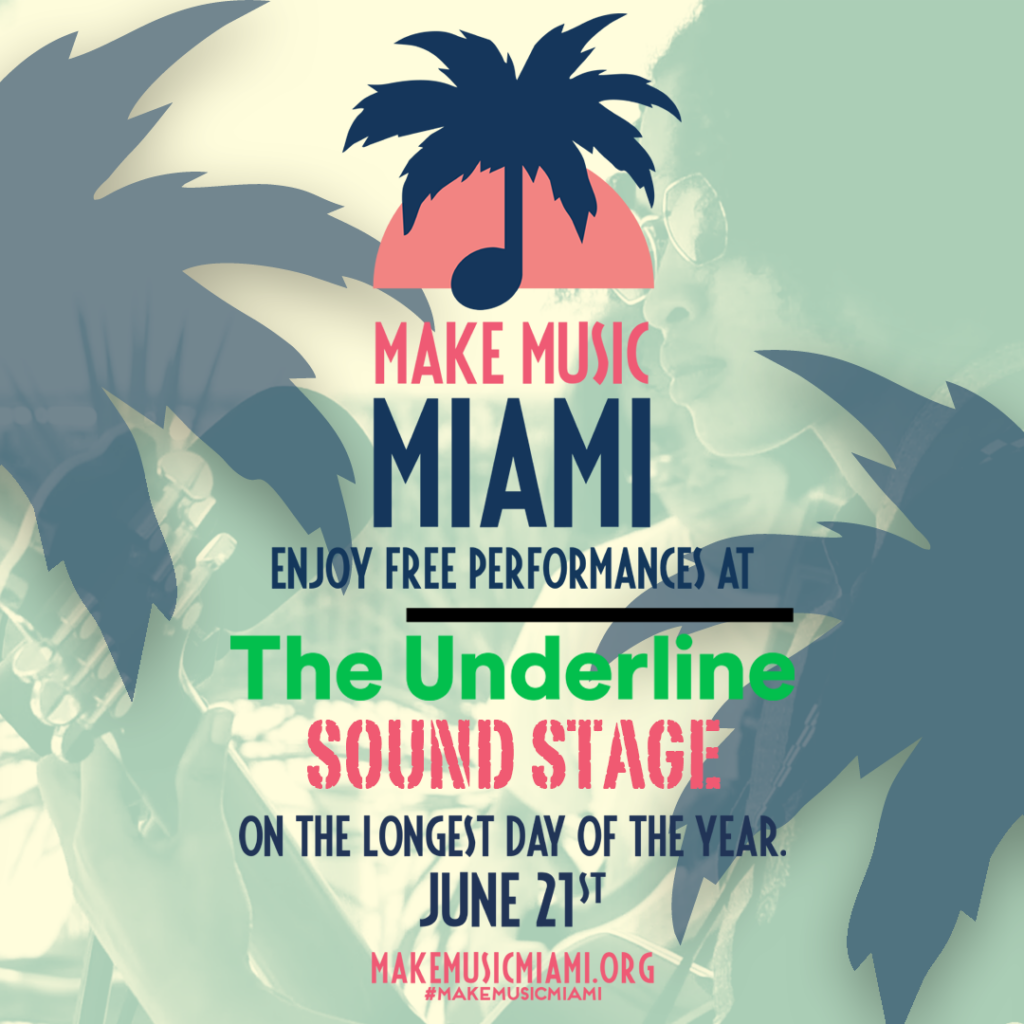 Launched in France in 1982 as the Fête de la Musique, Make Music Day is presented in the U.S. by The NAMM Foundation and coordinated by the nonprofit Make Music Alliance. On June 21, The Underline Brickell Backyard Sound Stage, located at the corner of SW 1st Avenue and SW 8th Street, will host a diverse lineup of Miami’s favorite music artists beginning at 10AM. Attendees will enjoy performances by 11 year-old Isabella Vazquez, vocal phenom and winner of Phil Collins’ Little Dreamers contest, Blue Talisman, a Latin singer/songwriter duo fronted by Yesler Cruz, wind virtuoso Damian Sanchez and indie rock outfit Quiana Major.