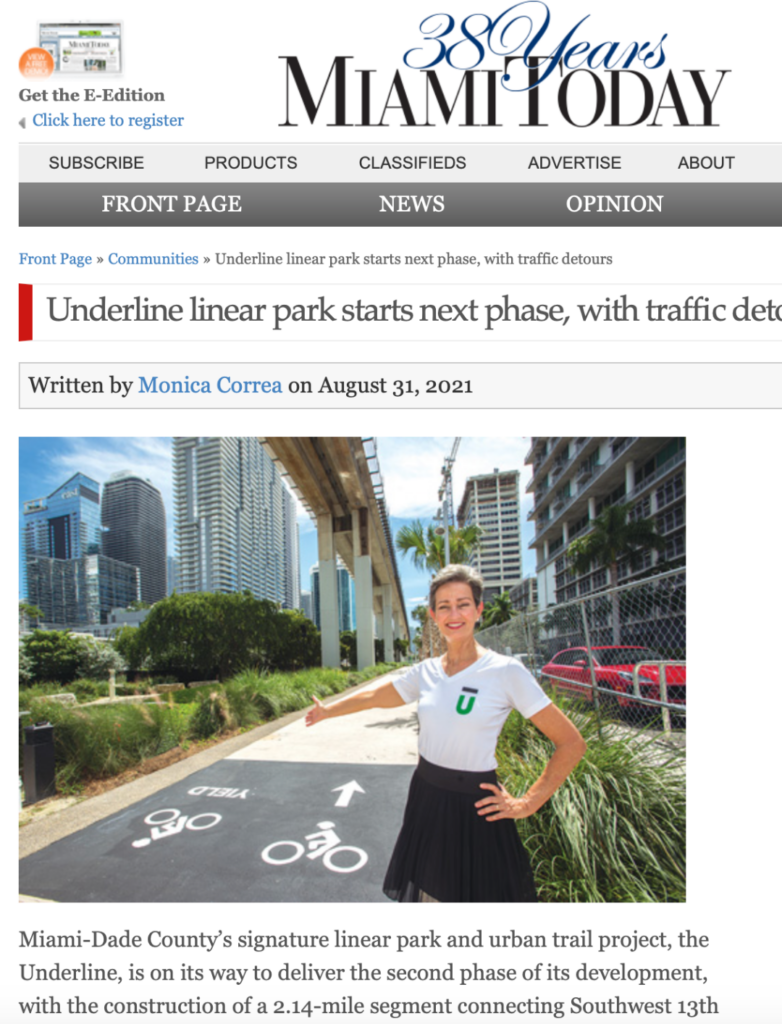 Miami-Dade County’s signature linear park and urban trail project, The Underline, is on its way to deliver the second phase of its development, with the construction of a 2.14-mile segment connecting Southwest 13th Street to 19th Avenue. The project, which is now estimated to cost around $141.2 million, came to life with the public-private partnership of the Miami-Dade Department of Transportation, the Public Works and the Parks, Recreation and Open Spaces Department, and Friends of The Underline, a non-profit organization whose mission is to deliver this 120-acre linear park that covers 10 miles of the area under the Metrorail. Read this article "Underline linear park starts next phase, with traffic detours" here.