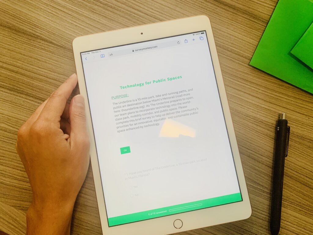 As The Underline prepares to open, our team plans to incorporate technology into the world-class park, mobility corridor, and public space. We are excited to launch our community listening sessions and surveys around technology in public spaces and parks. This pioneering work is made possible by a grant from the John S. and James L. Knight Foundation. Please complete this short survey to help us deliver the community’s priorities for an innovative, equitable, and sustainable public space enhanced by technology.