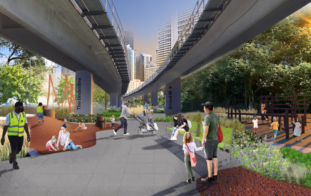 The new playground will be a key feature of Phase 2 of The Underline, which will also include new cycling and pedestrian paths, lush native planting, a renovated Vizcaya Station plaza and bioswale, plus other amenities. Construction is underway, with the playground scheduled to open in late 2023.