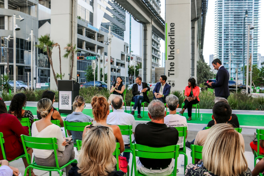 The Friends of The Underline hosted their first tech talk in person on Wednesday, May 26, 2021. It was the first of three technology and Miami public-space themed conversations that explore how the public realm and social good can be served by human-centered technology. The socially distanced series took place outdoors on The Underline’s Sound Stage and Plaza. A free event sponsored by Florida Power & Light Company.