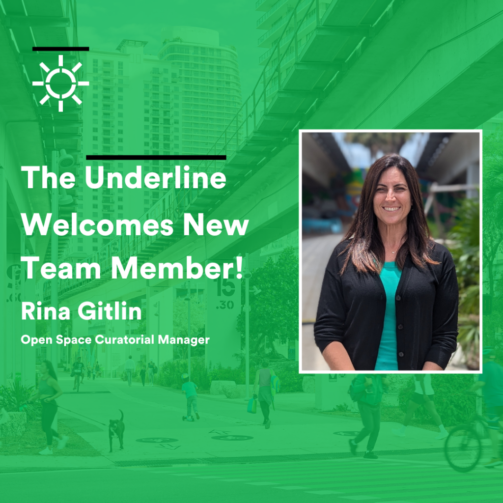 As Open Space Curatorial Manager, Gitlin will oversee and develop innovative art programs and public art installations across all ten miles of the project. Her vision and commitment to the transformative power of art will be instrumental in enhancing The Underline’s already robust art program. Through her contributions, the corridor will continue to reflect the diverse voices and stories of the Miami community.